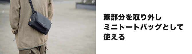 最大の特徴は、取り外し可能なデタッチャブル・フラップ。 本体から外せば、A4書類や13インチPCが収まるミニトートやサコッシュとして、身軽な外出をサポートします。
